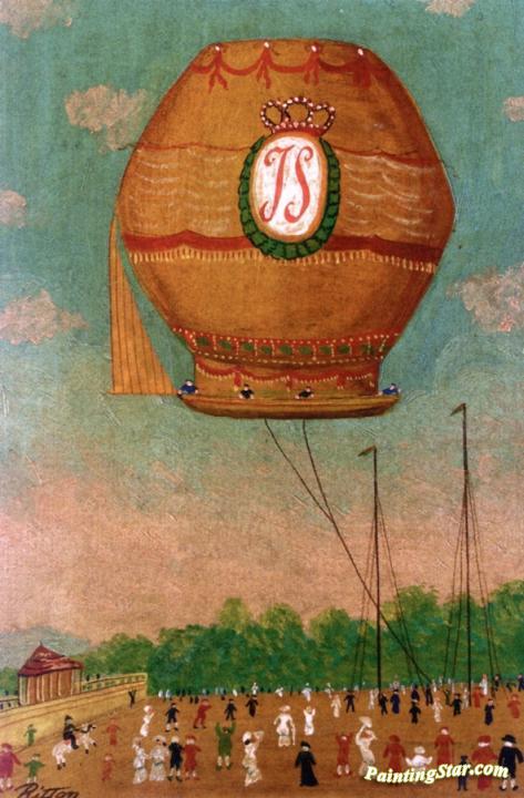 Premier expreience aerostatique effectuee en Autriche au prater de Vienne le 7 Juillet 1784, Art Painting by Hector Trotin