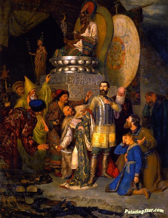 Prince Mikhail Chernigovsky before Batu Khan's Headquarters, Art Painting by Vasily Sergeevich Smirnov