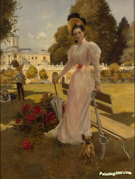 Princess Zinaida Yusupova with her sons Felix and Nikolai at Arkhangelskoye, Art Painting by Francois Flameng