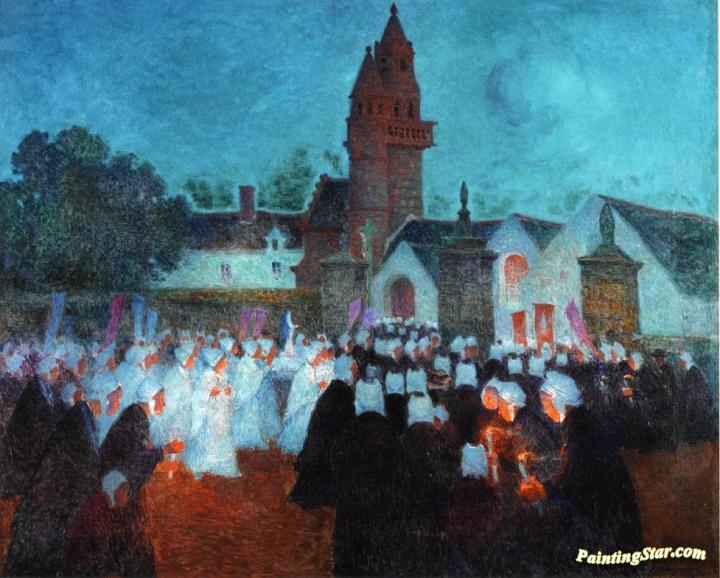 Procession at Nenvic, Art Painting by Ferdinand du Puigaudeau