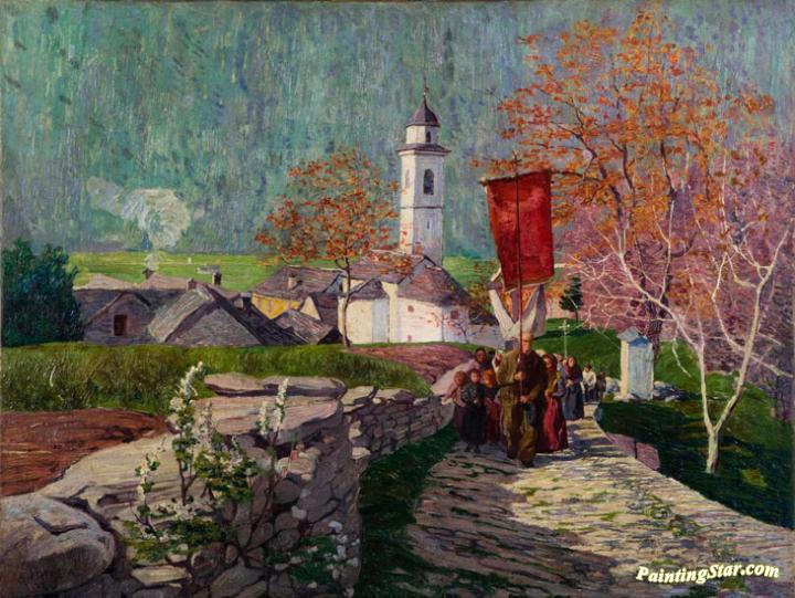 Procession to Prestinone in Vigezzo, Art Painting by Carlo Fornara