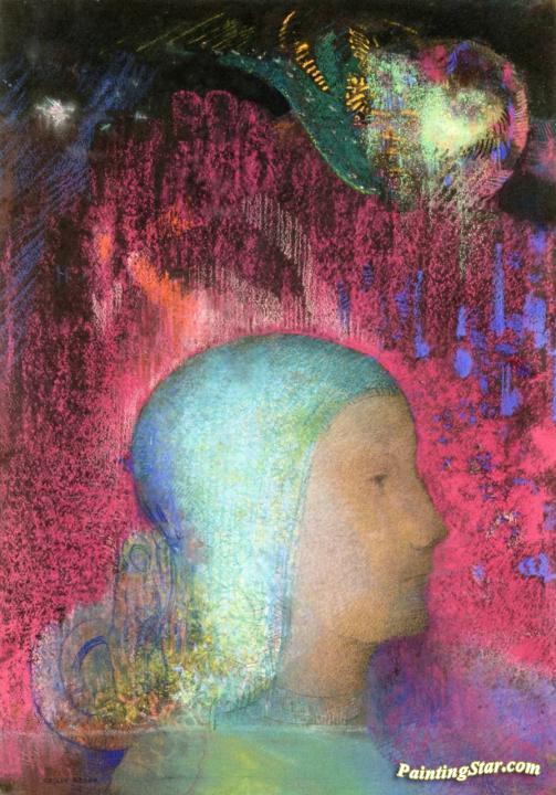 Profile on Red Meanders, Art Painting by Odilon Redon