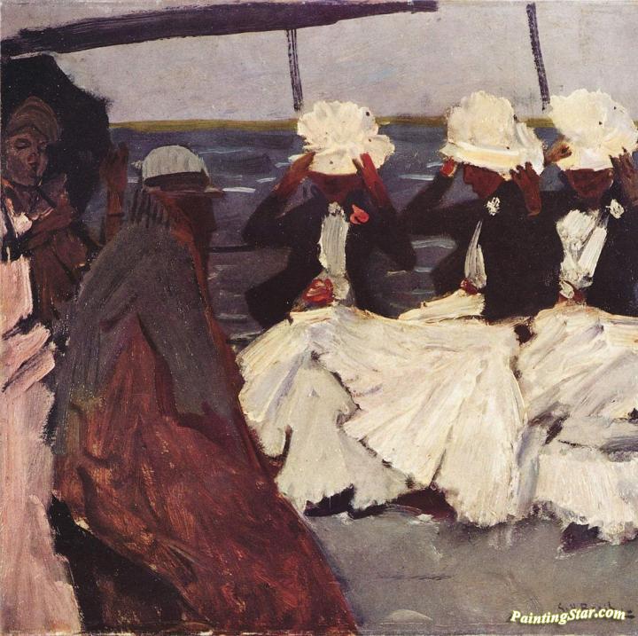Promenade deck with three ladies, Art Painting by George Heidrik Breitner