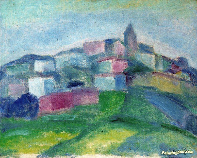 Pueblecito En La Hora Rosa, Art Painting by Daniel Vazquez Diaz