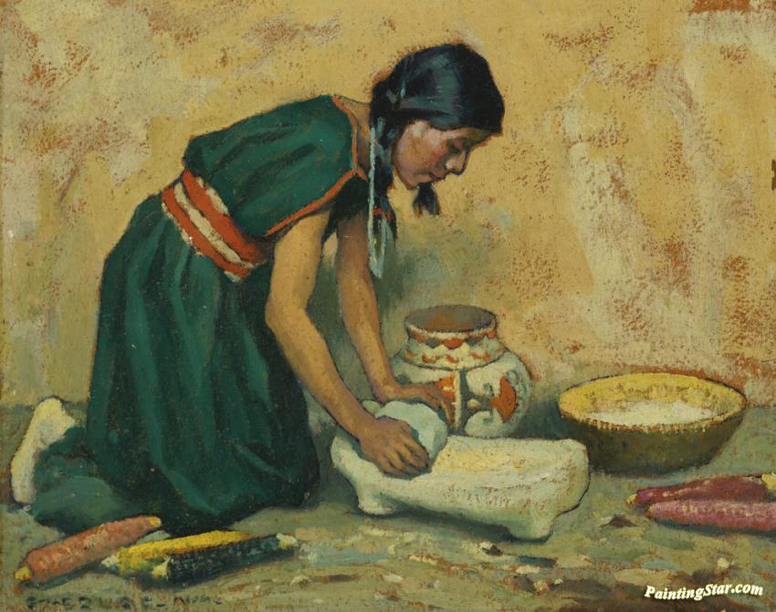 Pueblo Indian Girl, Art Painting by E. Irving Couse