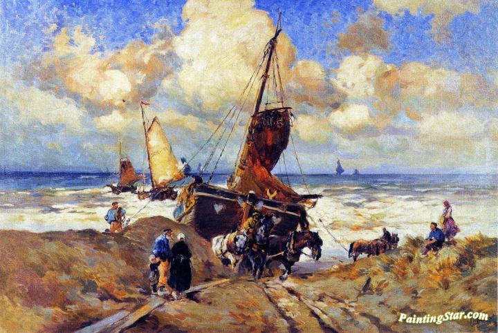 Pulling a Boat to Shore, Art Painting by Mathias J. Alten