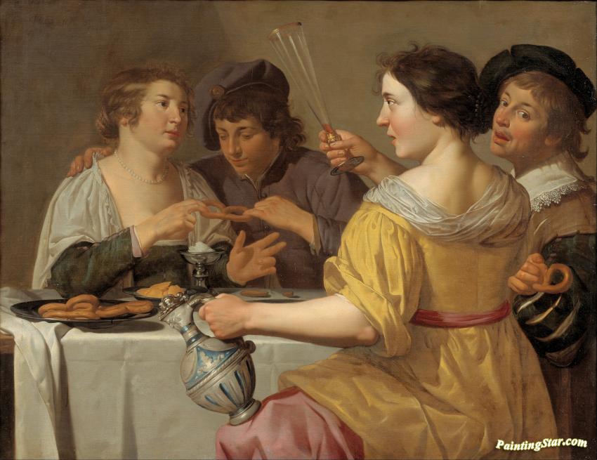 Pulling Of The Pretzel, Art Painting by Jan van Bijlert