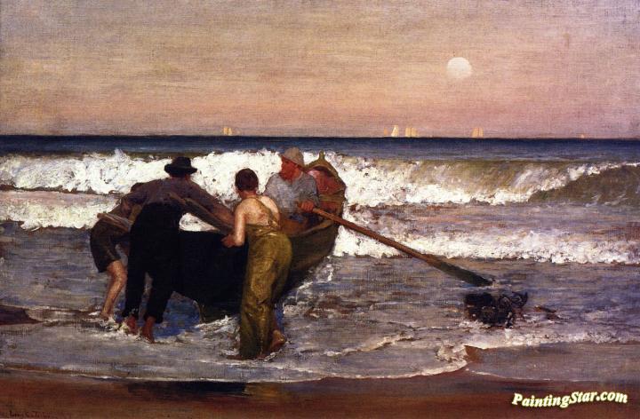 Pushing Off The Boat At Sea Bright, New Jersey, Art Painting by Louis Comfort Tiffany