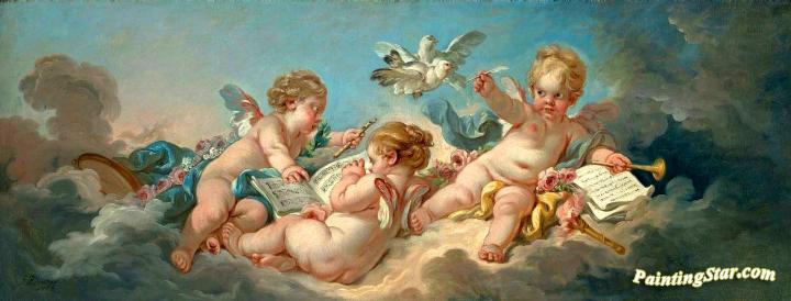 Putti Making Music, Art Painting by Francois Boucher