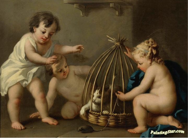 Putti Playing With A Cat, Art Painting by Jacopo Amigoni