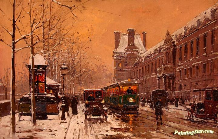 Quai Du Louvre In Winter, Art Painting by Edouard Léon Cortes
