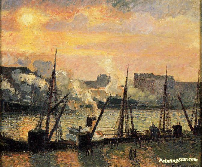 Quay in Rouen: Sunset, Art Painting by Camille Pissarro