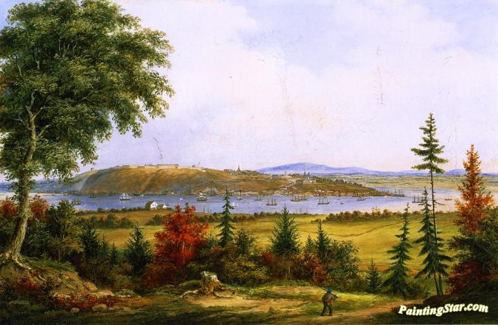 Quebec from Pointe-Lévis, Art Painting by Cornelius Krieghoff