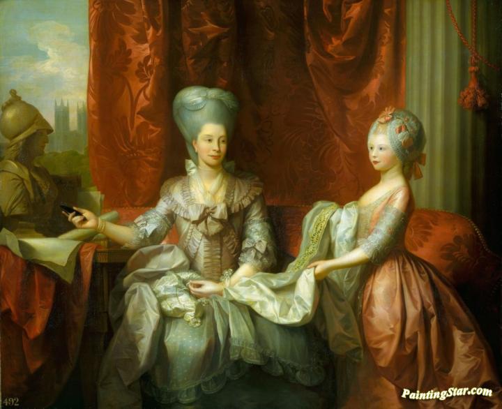 Queen Charlotte (1744-1818) With Charlotte, Princess Royal (1766-1828), Art Painting by Benjamin West