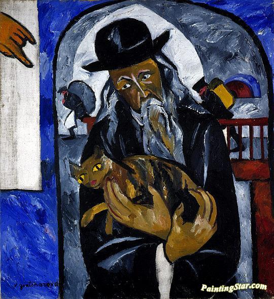 Rabbi With Cat, Art Painting by Natalia Goncharova