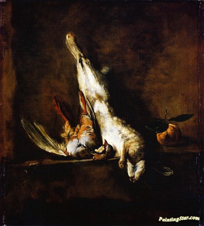 Rabbit with Red Partridge and Seville Orange, Art Painting by Jean-Baptiste-Simeon Chardin
