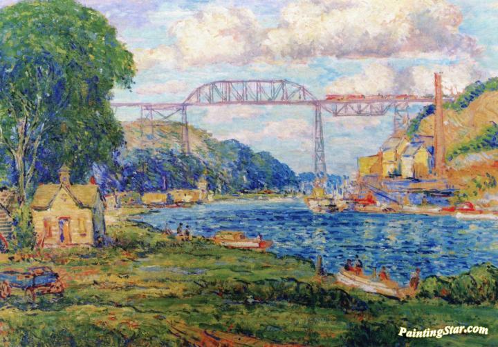 Railroad Bridge Near Rondout, New York, Art Painting by Reynolds Beal