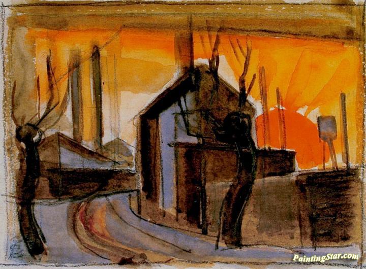 Railroad Station, Silver Lake, New Jersey, Art Painting by Oscar Bluemner