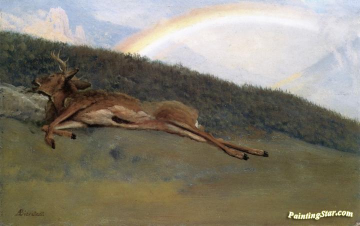 Rainbow over a Fallen Stag, Art Painting by Albert Bierstadt