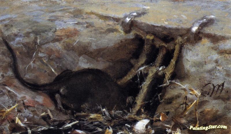 Rat In The Gutter, Art Painting by Adolph von Menzel