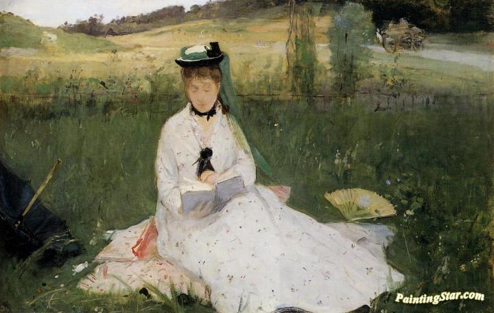 Reading with Green Umbrella, Art Painting by Berthe Morisot