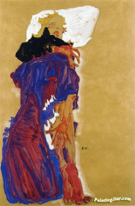 Reclining Girl on a Pillow, Art Painting by Egon Schiele