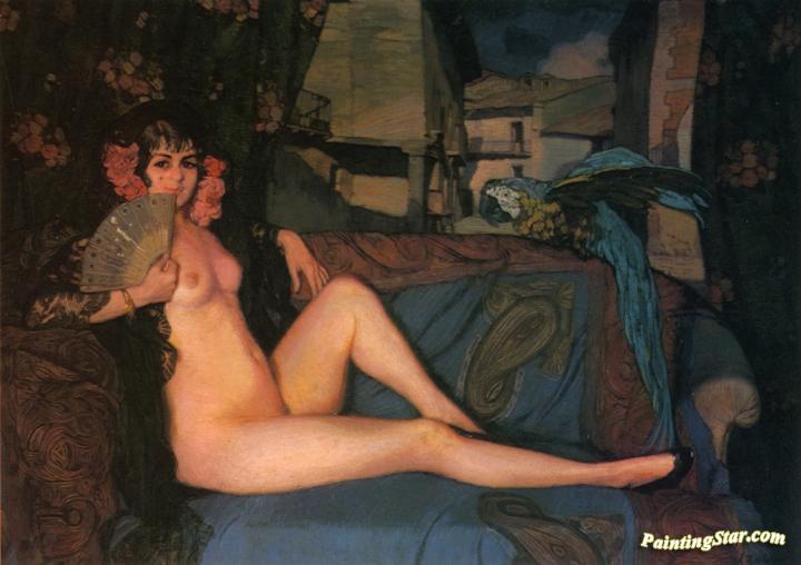 Reclining Maja With Blue And Gold, Art Painting by Ignacio Zuloaga y Zabaleta