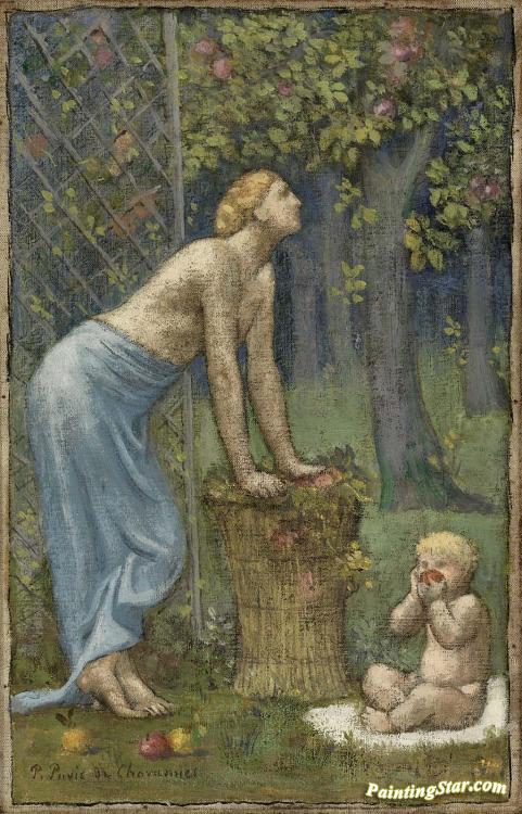 Recolte des Pommes, Art Painting by Pierre Puvis de Chavannes