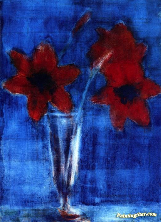 Red Amaryllis on Blue, Art Painting by Christian Rohlfs