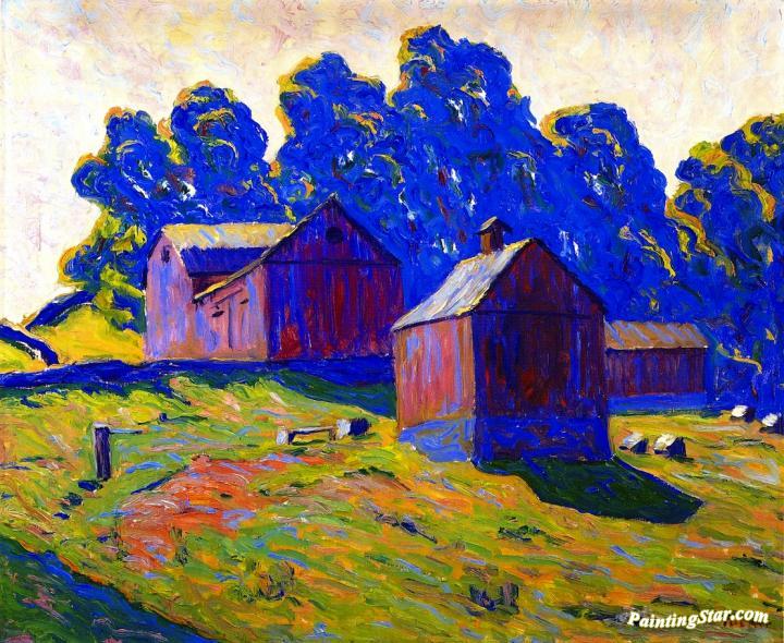 Red Barns, Art Painting by Allen Tucker