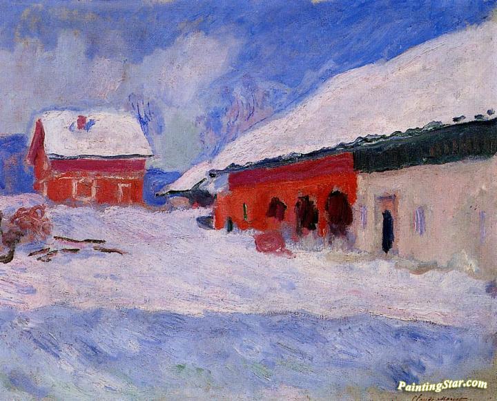 Red Houses at Bjornegaard in the Snow, Norway, Art Painting by Claude Oscar Monet