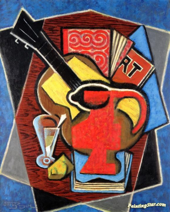 Red Pitcher, Guitar And Books, Art Painting by Jean Metzinger