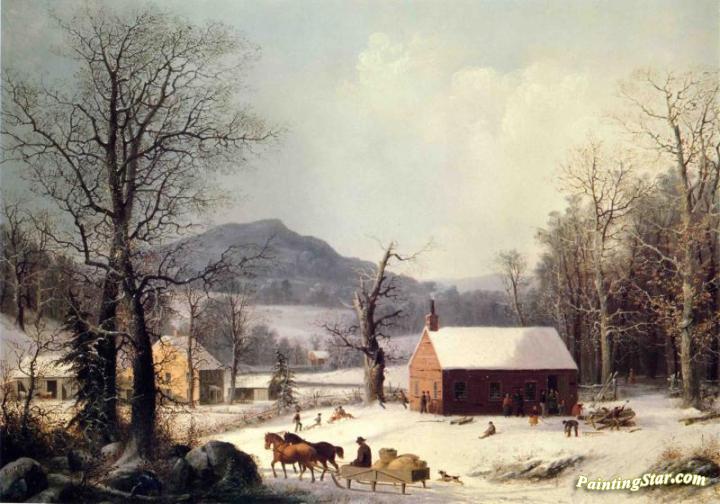 Red School House, Winter, Art Painting by George Henry Durrie