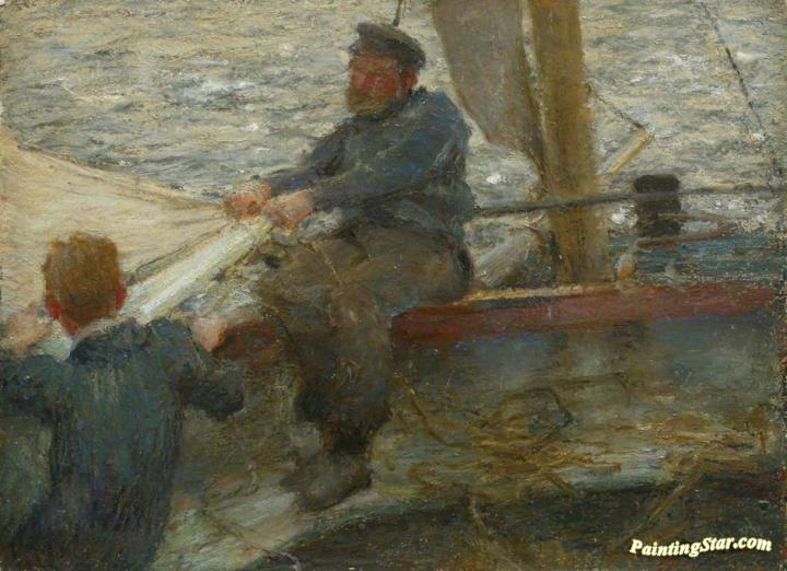 Reefing the Mainsail (sketch), Art Painting by Henry Scott Tuke