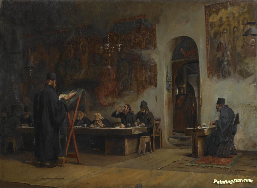 Refectory In A Greek Monastery (mount Athos), Art Painting by Theodoros Ralli