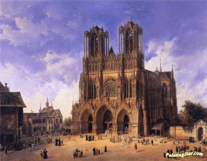 Reims Cathedral, Art Painting by Domenico Quaglio