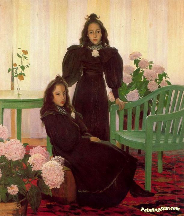 Retratro de Gemelas, Art Painting by Santiago Rusiñol Prats