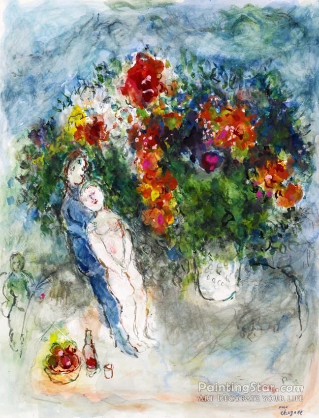 Reverie D'amoureux, Art Painting by Marc Chagall