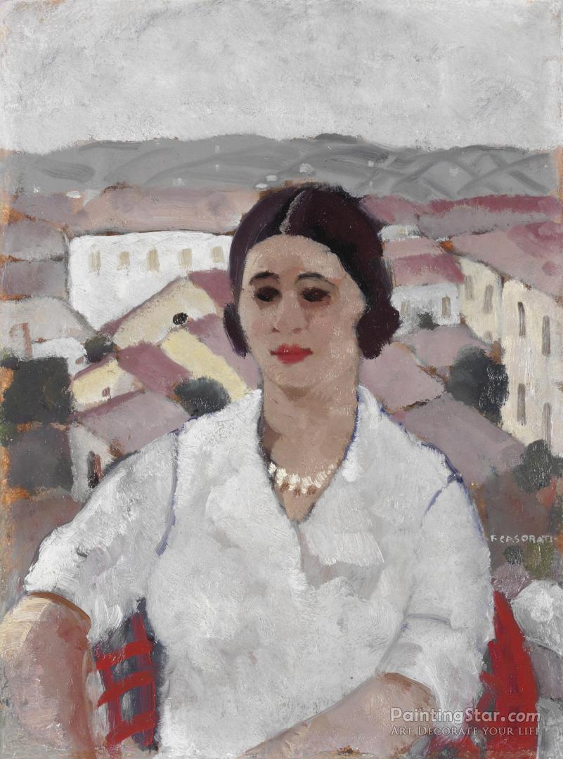 Ritratto Di Raja Con Paesaggio, 1925, Art Painting by Felice Casorati