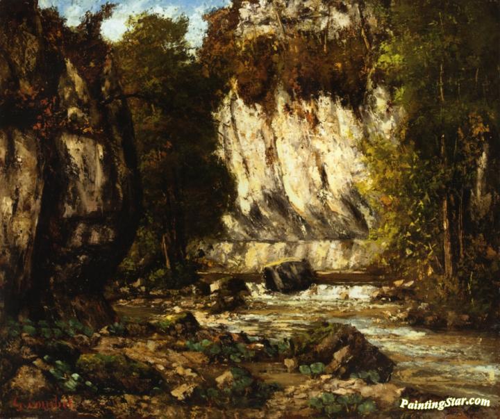 River and Cliff, Art Painting by Gustave Courbet