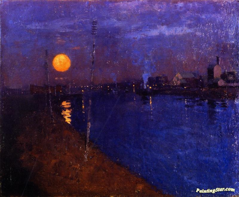River Landscape By Moonlight, Art Painting by George Henry