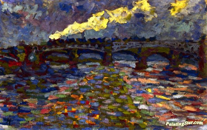 River Landscape with Bridge and Train, Art Painting by Karl Schmidt Rottluff
