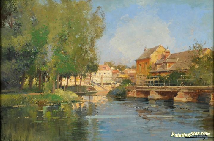 River Landscape With City View, Art Painting by Eugene Galien-Laloue