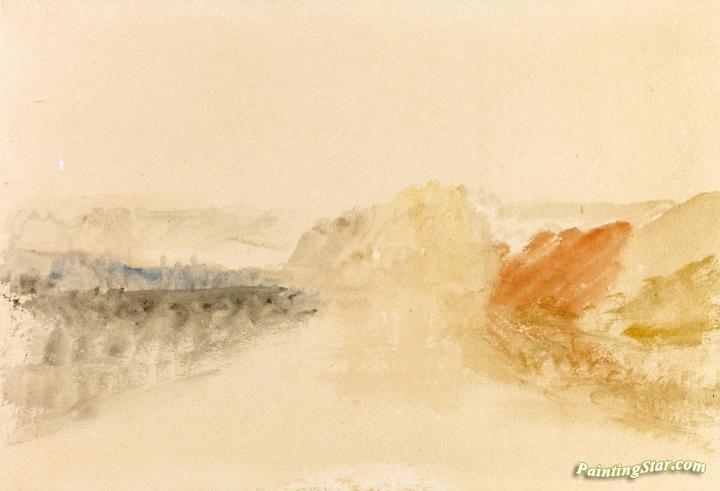 River Scene, a Fort above, Art Painting by Joseph Mallord William Turner