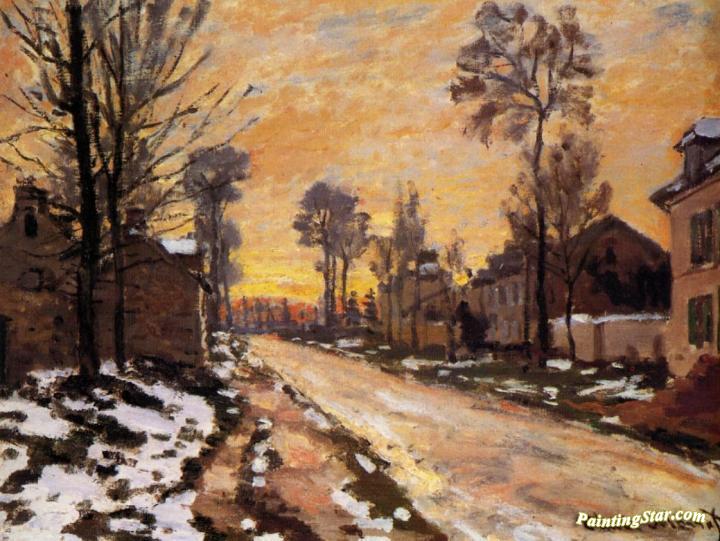 Road at Louveciennes, Melting Snow, Sunset, Art Painting by Claude Oscar Monet