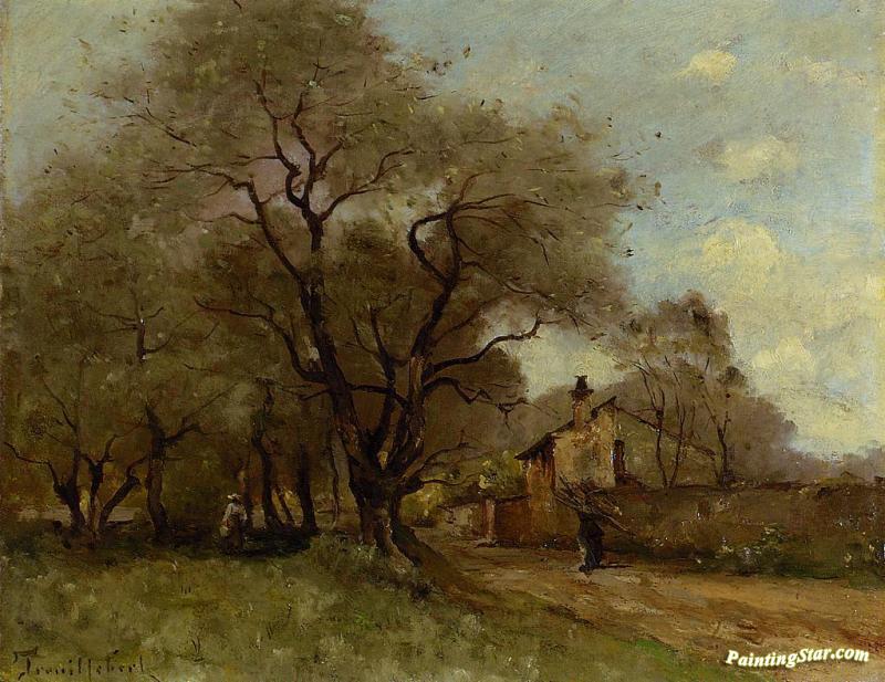 Road On The Edge Of A Village, Art Painting by Paul-Desire Trouillebert