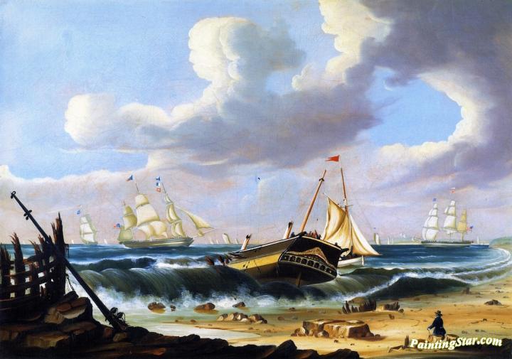 Rockaway Beach, New York, With The Wreck Of The Ship Bristol, Art Painting by Thomas Chambers