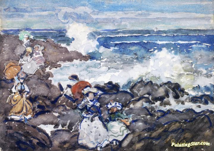 Rocks, Waves and Figures, Art Painting by Maurice Prendergast