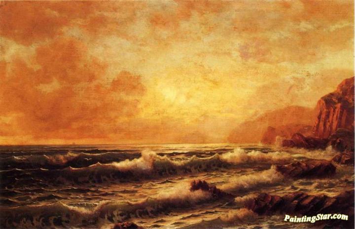 Rocky Coast At Sunset, Art Painting by William Trost Richards