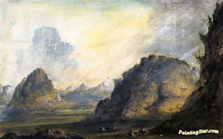 Rocky Formations near the Nebraska or Platte River, Art Painting by Alfred Jacob Miller